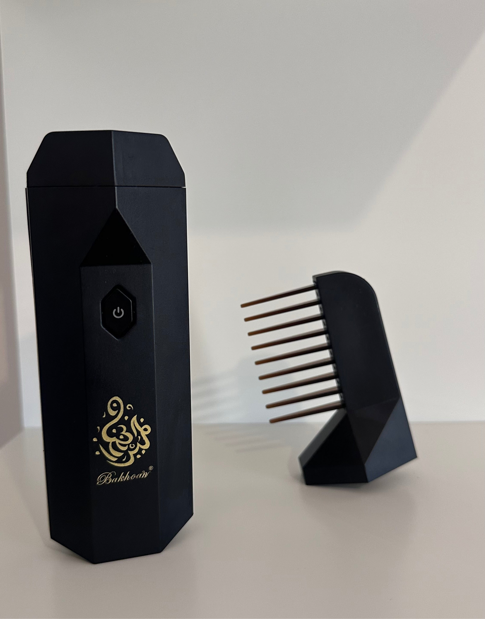 Grâce à son design élégant et sa prise en main facile, profitez d’un parfum envoûtant où que vous soyez : dans la voiture, à la maison, en voyage ou avant une sortie. Son embout spécialement pensé pour les cheveux diffuse délicatement la senteur du bakhoor sans les agresser, tout en laissant une empreinte olfactive durable et raffinée.